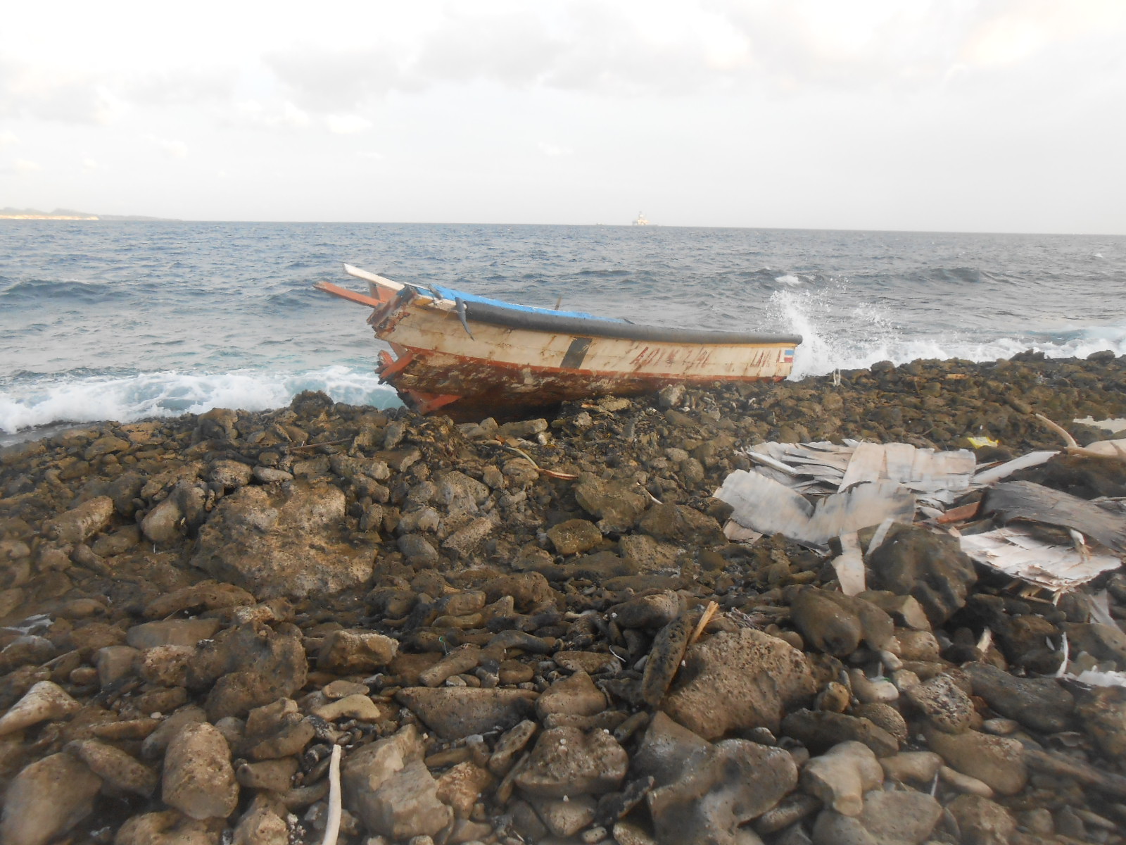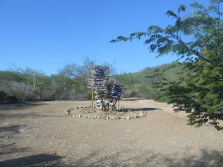 De Palu di Sia stond in de buurt van de grot, we moesten nog een stukje langs de rotswand. Het begon enigzins rotsachtig te worden en dat betekende dat we de grot naderden. Bij de bijna dode Manzanillaboom, die half de ingang van de grot versperde, klommen we naar boven. De kop van de bok ( boelbak ) lag op de grond binnen in de grot. De indianen tekens werden vereeuwigd.